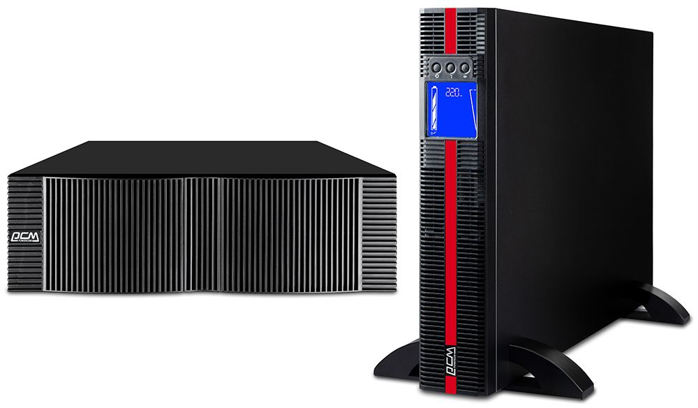 Тоді зверніть увагу на багатофункціональний ДБЖ з подвійним перетворенням напруги (on-line) і правильною синусоїдою серії MACAN COMFORT з поворотним ЖК-дисплеєм від POWERCOM, модель MRT-10000 (Power Modul+Bat Modul).