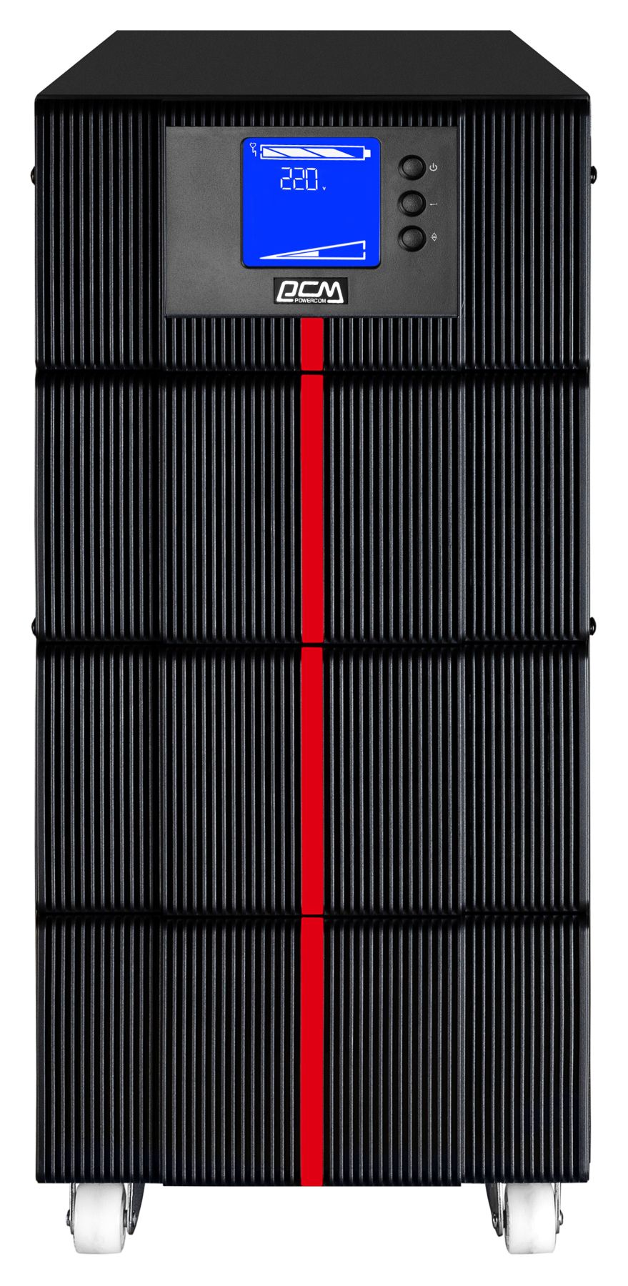 Тоді зверніть увагу на багатофункціональний ДБЖ з подвійним перетворенням напруги (on-line) та правильною синусоїдою серії MACAN COMFORT з LCD дисплеєм від POWERCOM, модель MAC-10K (10000VA).