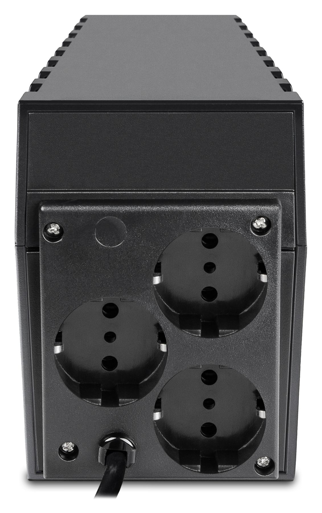 Для удобства подключения оборудования в ИБП предусмотрено три выходных розетки EURO (CEE 7/3) с батарейной поддержкой.
