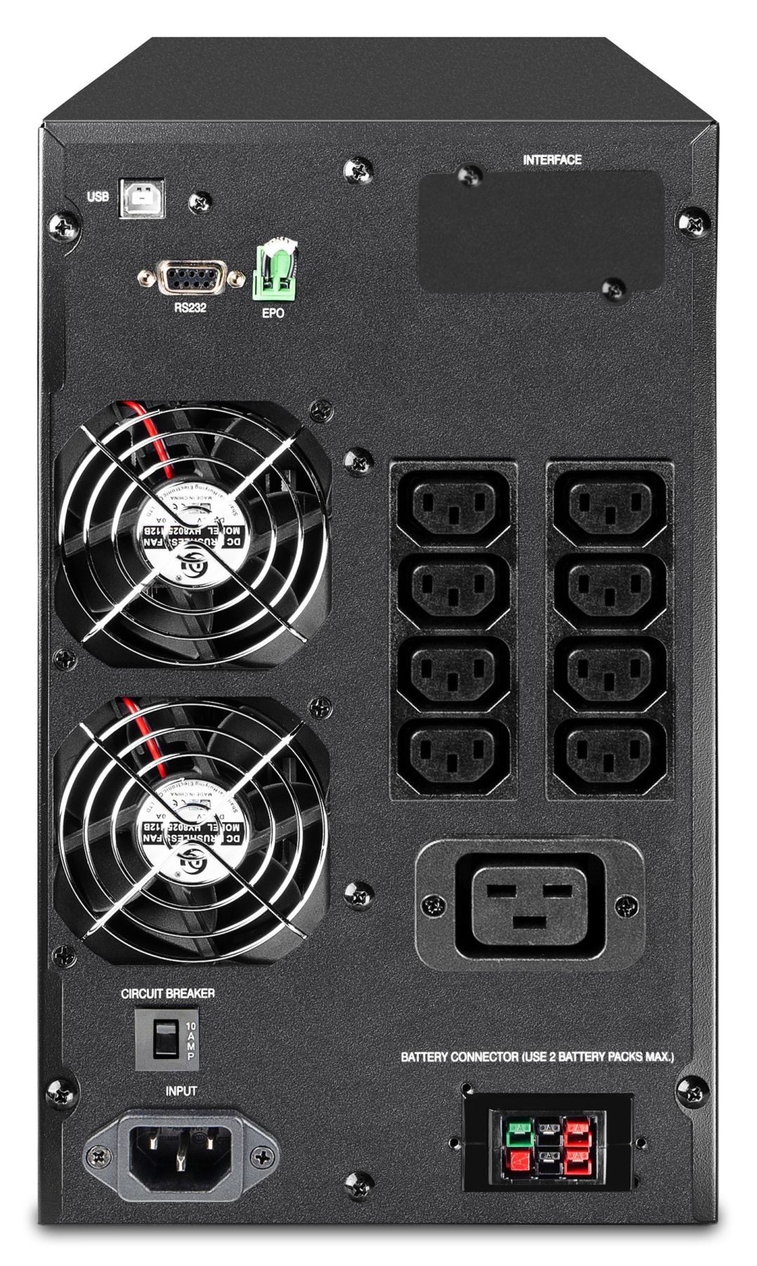 Источник бесперебойного питания Online типа MAC-2000 прост в установке и удобен в эксплуатации, кроме этого, он обладает значительно меньшим уровнем шума за счёт установки 6-скоростного вентилятора охлаждения.
