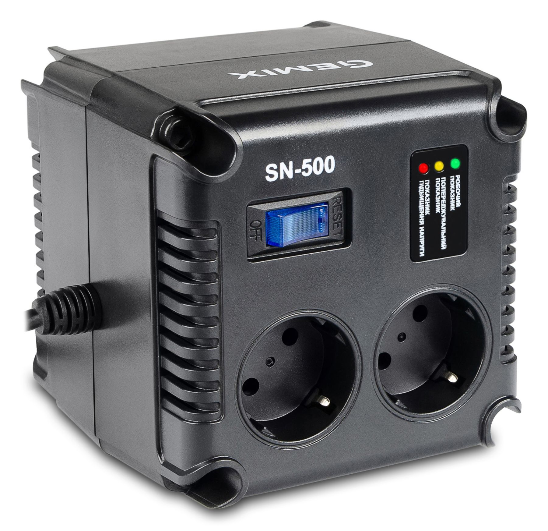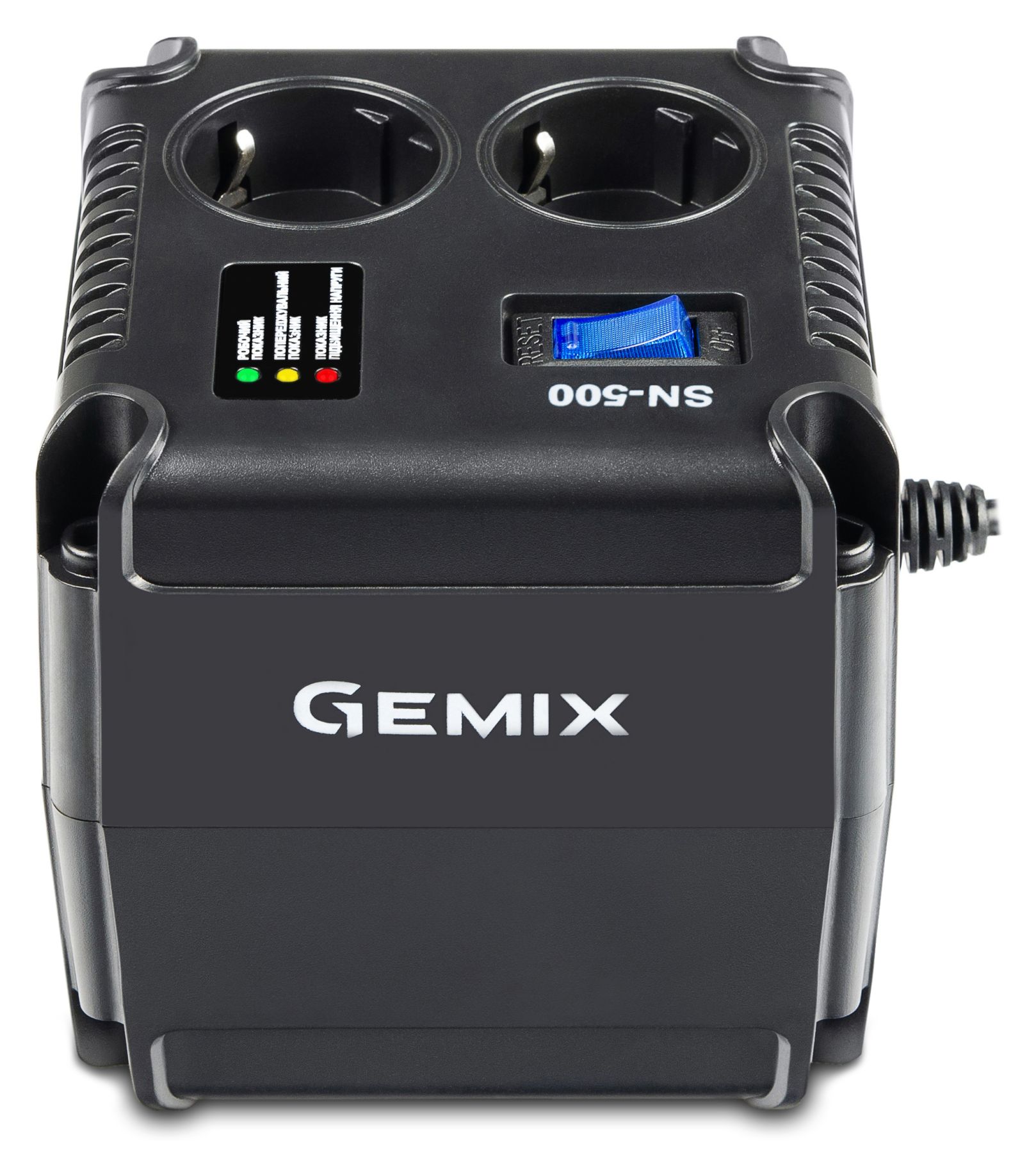 Автоматический стабилизатор Gemix SN-500 напряжения, предназначен для защиты бытовых приборов мощностью до 500 ВА, от основных проблем с электропитанием.